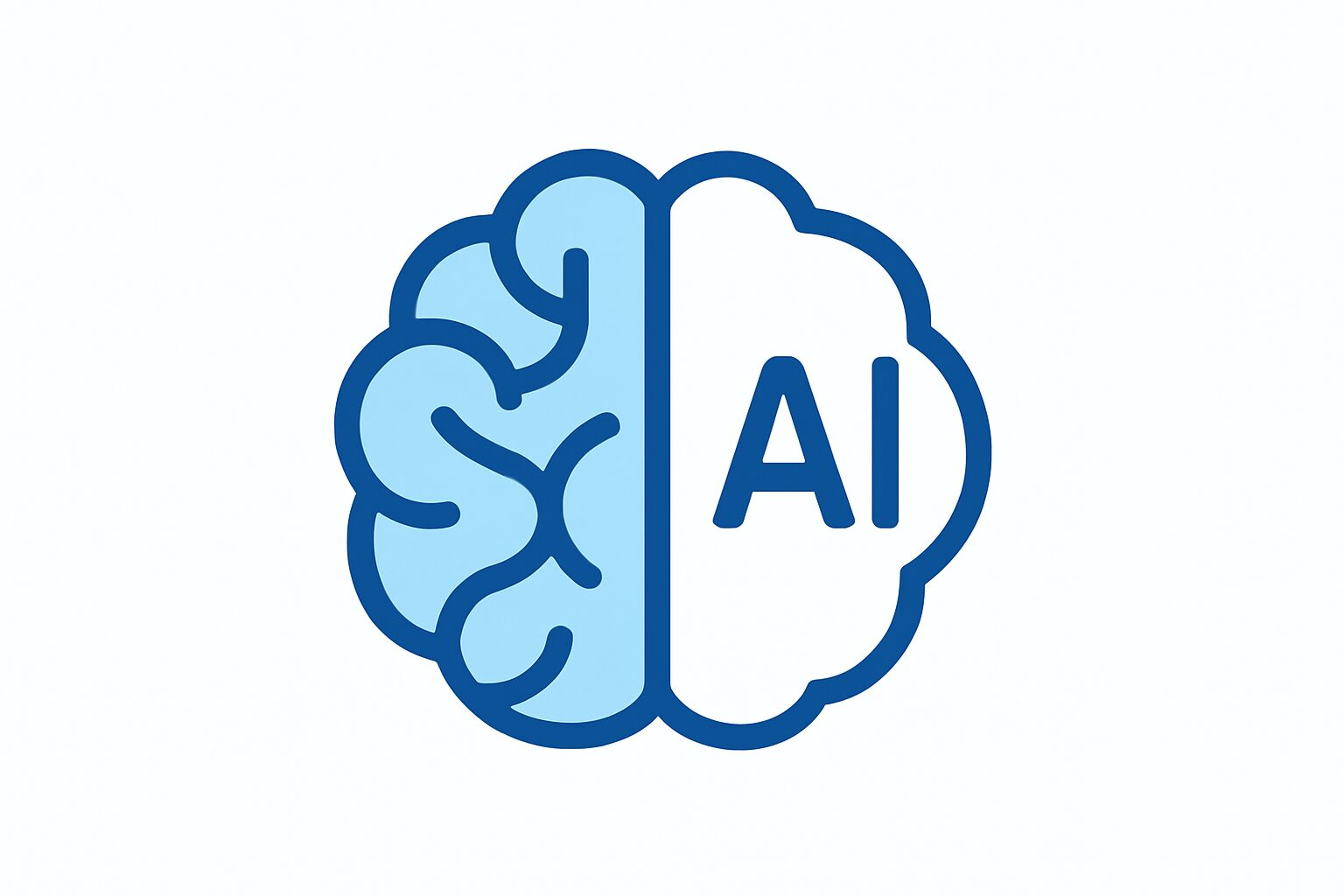「シンプルな AI 脳のアイコン。青系と白系の配色で、フラットデザイン、余白を意識して。」